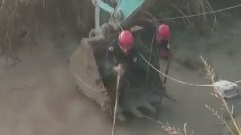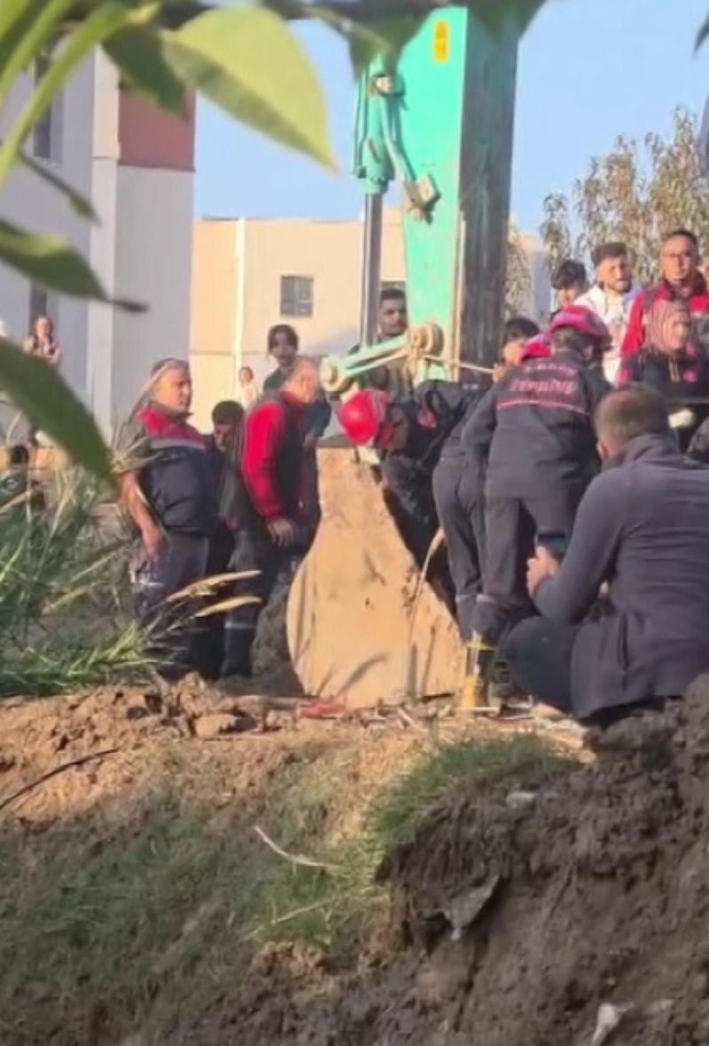 İhbar üzerine bölgeye itfaiye ve polis ekipleri sevk edildi. Ekiplerin iş makinesiyle yaptığı çalışmada Muhammed de bulundu.