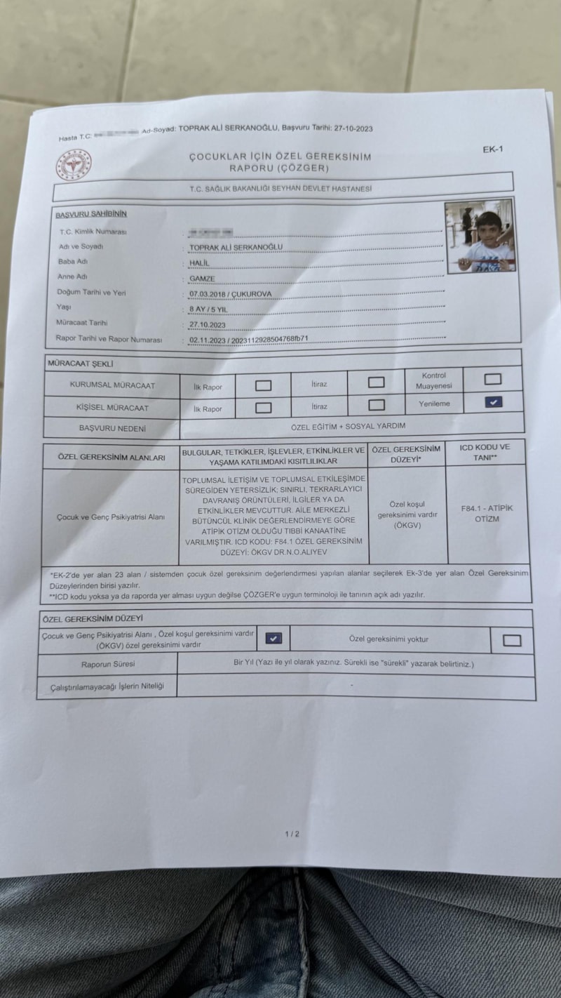 Seyhan ilçesinde bulunan Sümer Mahallesi'ndeki Dora Otizm Rehabilitasyon Merkezi'nde eğitim gören otizmli evlatları T.A.'yı alan Halil ve Gamze Serkanoğlu çifti, çocuklarında bazı değişimler gözlemledi.