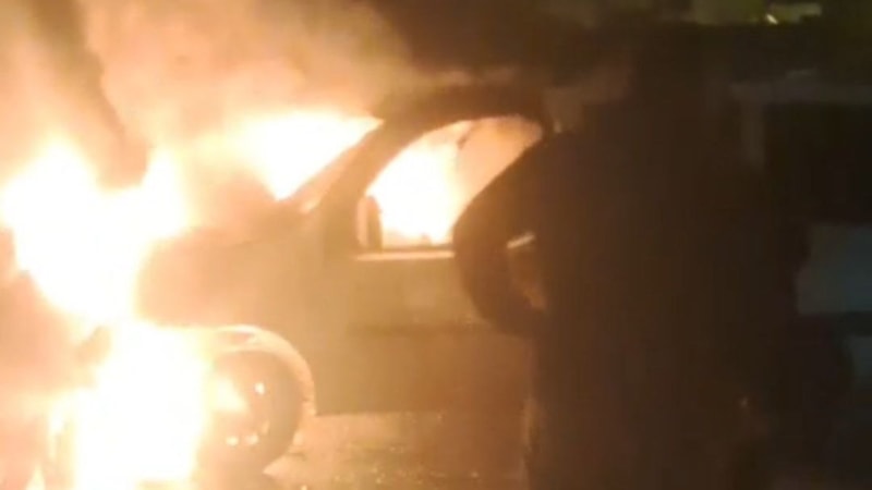 Kozan ilçesinde park halindeki otomobil alev alev yanarken alevlerin gökyüzünü aydınlattığı anlar cep telefonu kamerası ile kaydedildi.
