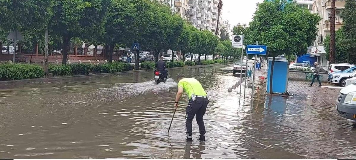 Bir trafik polisinin tıkanan rögarı açmaya çalışması ise dikkat çekti.