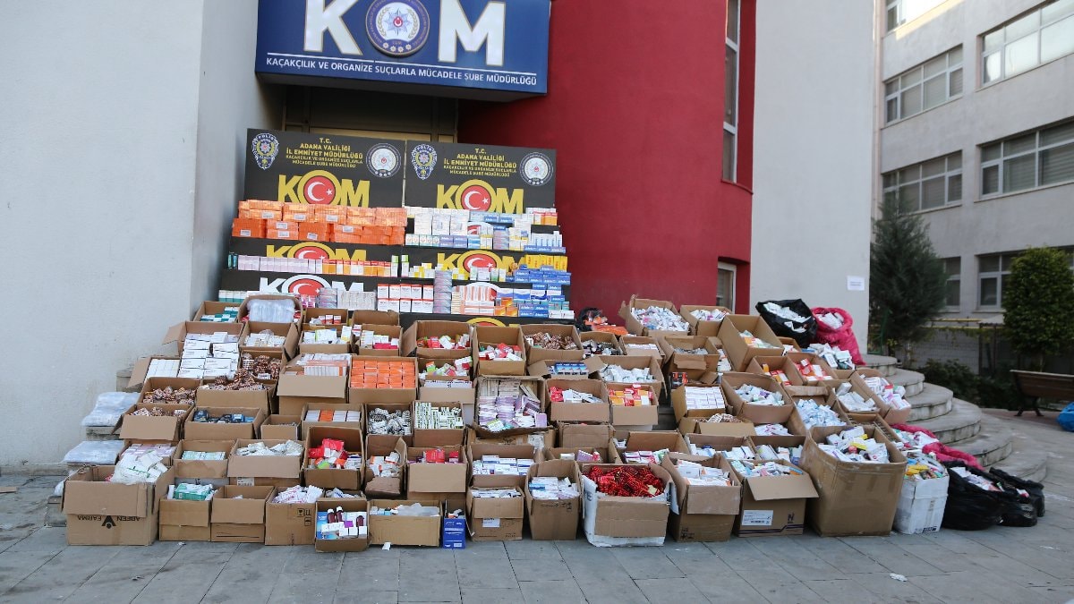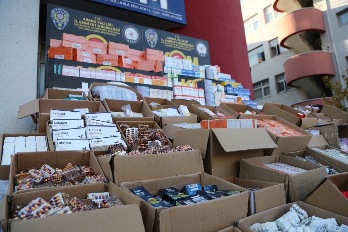 Seyhan ilçesine bağlı İstiklal Mahallesi'nde bulunan depoya yapılan baskında ağrı kesici, antibiyotik ve serum gibi ilaçların bulunduğu 145 bin 520 kutu ilaç ele geçirildi.