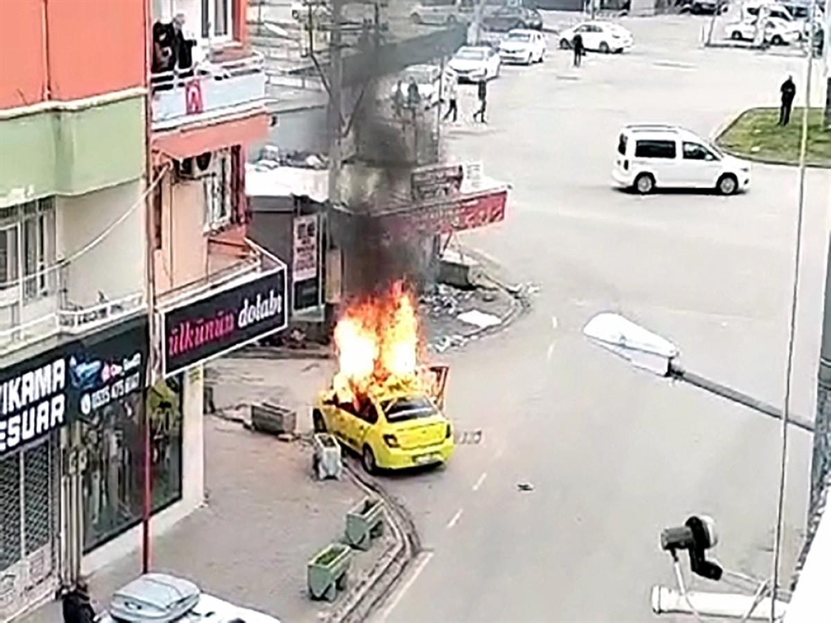 Erdal K., Umaç’ın oğlu Aras Umaç’ın (26), restoranın önünde park halindeki taksisini ateşe verdi. Cep telefonu kamerasıyla kaydedilen olayın ardından Erdal K., Aykut B.’nin (33) motosikletine binip, kaçtı.