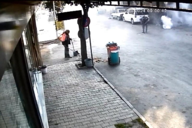 Yaşananlar çevredeki bir iş yerinin güvenlik kamerasına yansıdı.