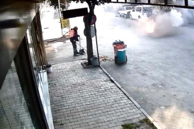 Patlamanın şiddeti nedeniyle ilaçlama yapan işçi ile çevredekiler kısa süreli panik yaşadı.