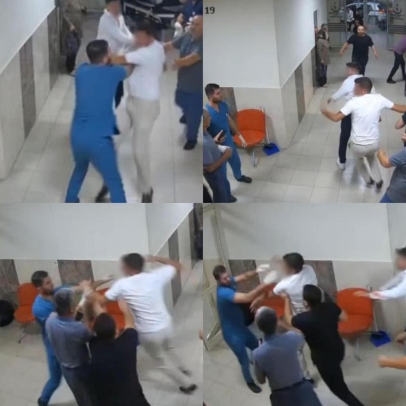 Özçelik’in hastaneye getirildiği sırada gruptan bir kişi sağlık çalışanlarına saldırdı. Güvenlik kamerasına yansıyan olayda, yaralı taşınırken saldırganın sağlık görevlilerine yumruk attığı görüldü. Olayda sağlık personeli M.A.’nın omzu çıktı, H.O. ise darbedildi.