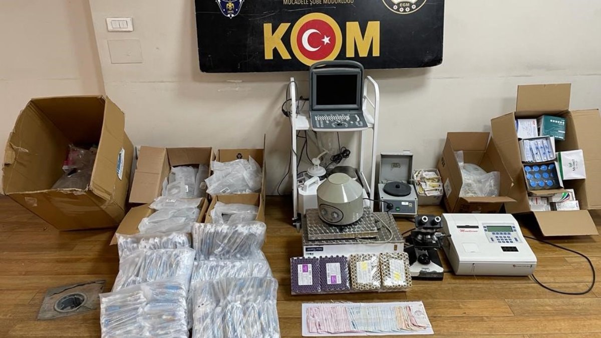 Baskın yapılan binada, İl Sağlık Müdürlüğü ekipleriyle gerçekleştirilen aramada, 90 serum ile 300 iğne, anestezik ve bulantı önleyici 339 kutu ilaç, 259 enjektör, ultrason, mikroskop, şeker ölçüm gibi işlemler için kullanılan 8 tıbbi cihaz, 56 Kovid-19 ve gebelik testi, 390 kan tüpü, 21 bin 645 lira ve çeşitli tıbbı malzemeler ele geçirildi.