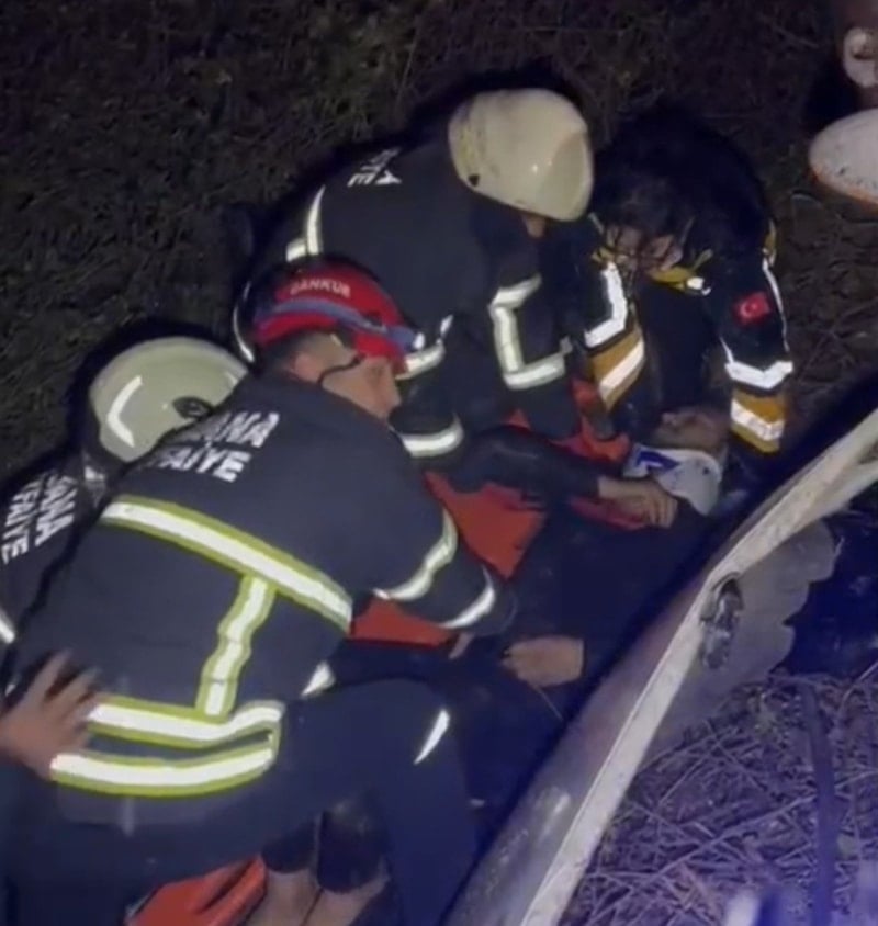 Adana'da otoyolda kontrolden çıkarak şarampole yuvarlanan otomobildeki 2 kişi yaralanırken, ekipler ise kurtarmak için büyük mücadele verdi.