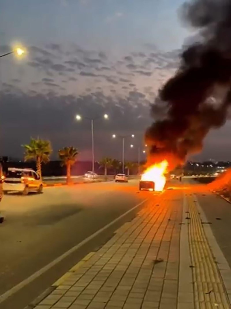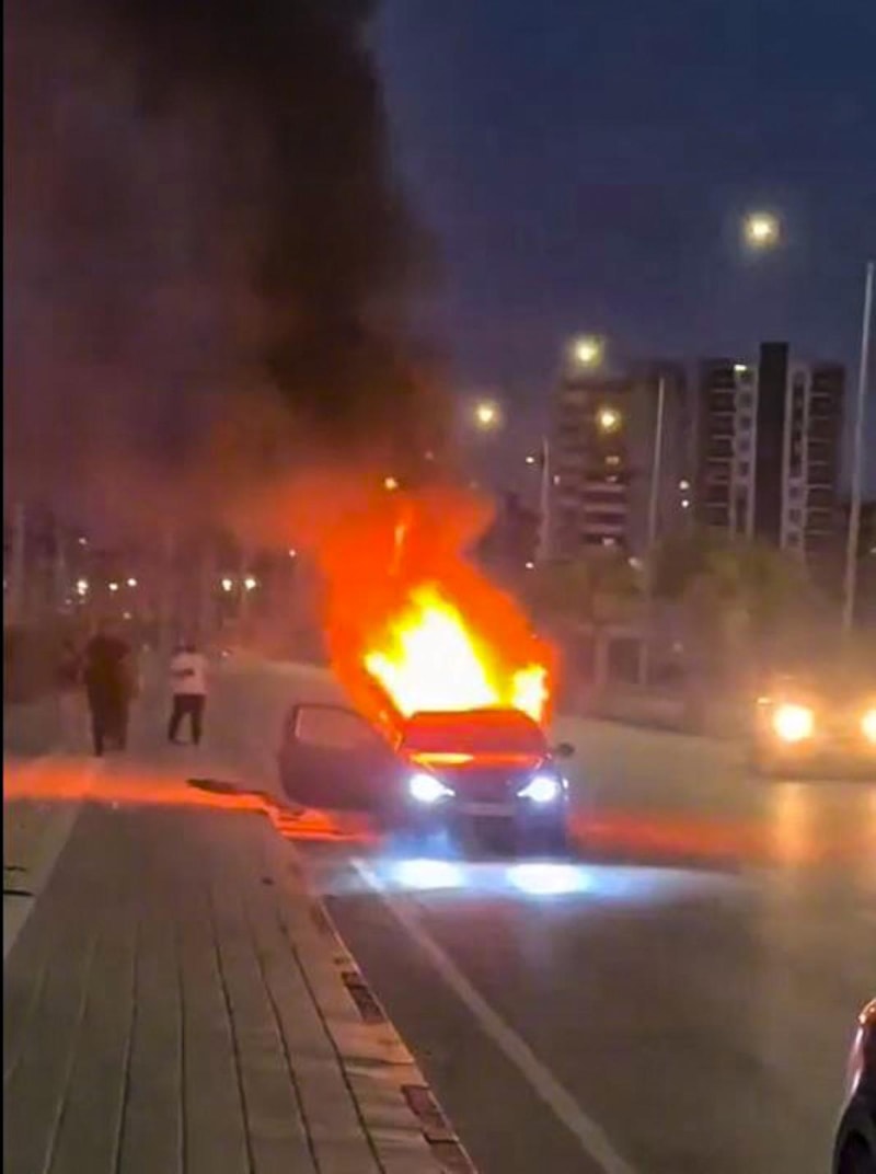 Adana'nın Sarıçam ilçesi Gültepe Mahallesi İlim Yolu Bulvarı’nda akşam saatlerinde seyir halindeki bir otomobil, henüz belirlenemeyen nedenle aniden alev aldı.