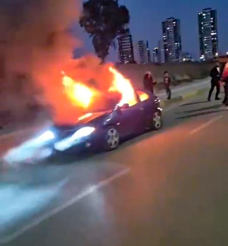 Alev topuna dönen otomobili yolun sağına çekmeyi başaran sürücü, yangından yara almadan kurtuldu. O anlar, bir vatandaşın cep telefonu kamerasına yansıdı.