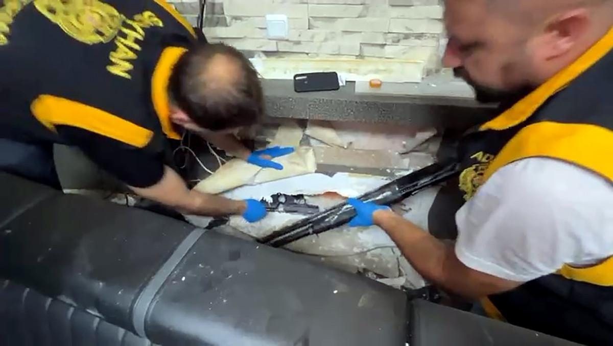 Silahlardan bazılarının, duvarın içindeki gizli bölmeye saklandığı tespit edildi.