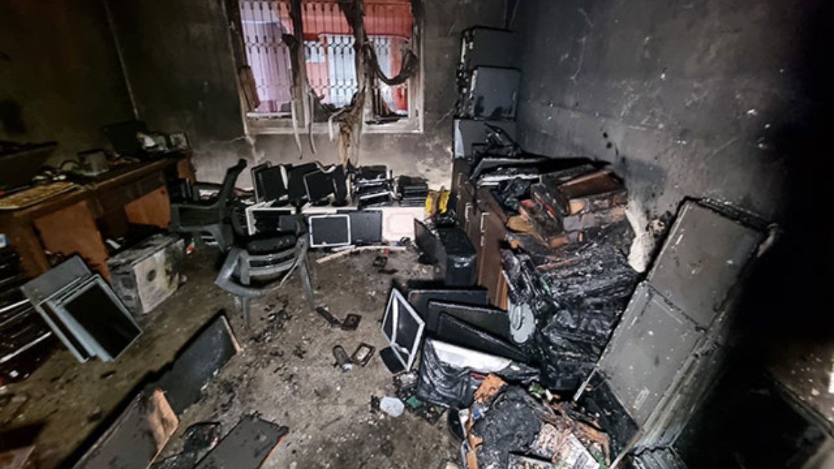 Elektrik kontağından çıktığı saptanan yangın nedeniyle oda ve içindeki bilgisayarlar yandı. Polis, yangınla ilgili soruşturma başlattı.