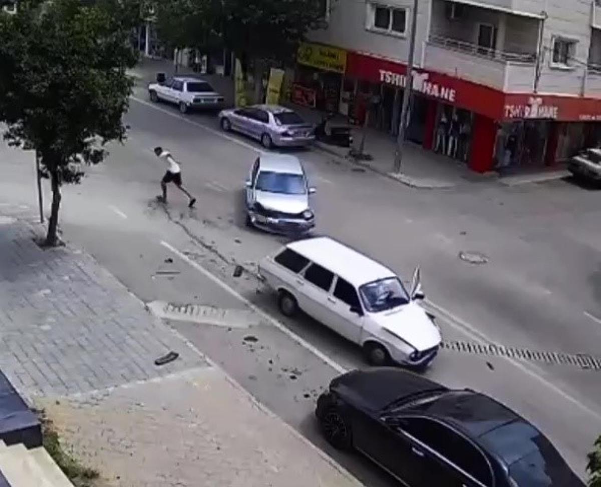 Çarpışmanın etkisiyle Mustafa K.T.'nin kullandığı otomobilin kapısı açıldı.