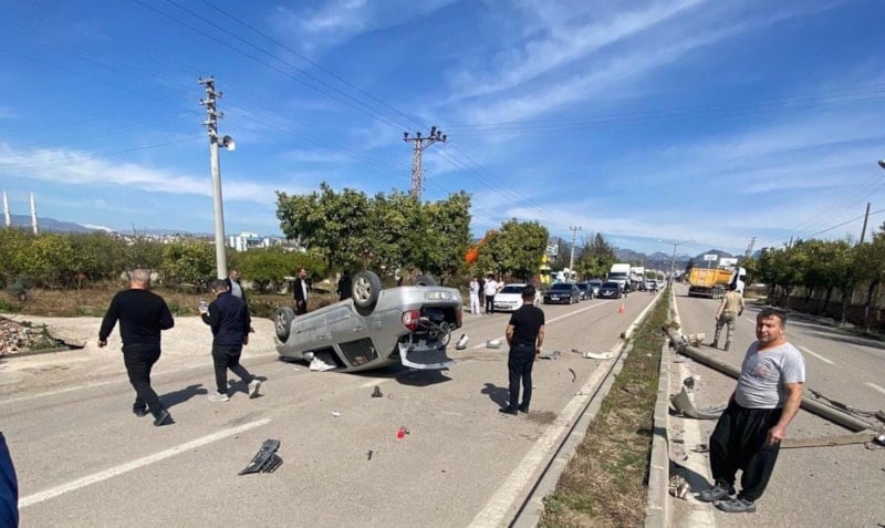 Kozan ilçesinde yaşanan trafik kazasında takla atarak ters dönen otomobili çevredeki sürücüler imece usulü düzeltti.