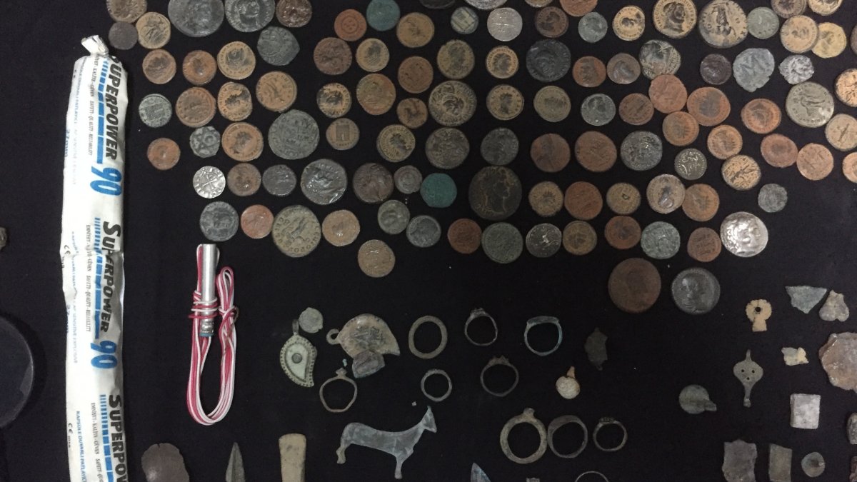 Olayla ilgili 2 kişi gözaltına alındı. Zanlılar tarihi eser kaçakçısı olmadıklarını, koleksiyoner olduklarını ileri sürdü. Zanlılar, eserlerden birinin kil tablete yazılmış ilk tarihi tıp diploması olduğunu öne sürdü. Bir heykelin ise değerinin 30 bin dolar olduğu iddia edildi.