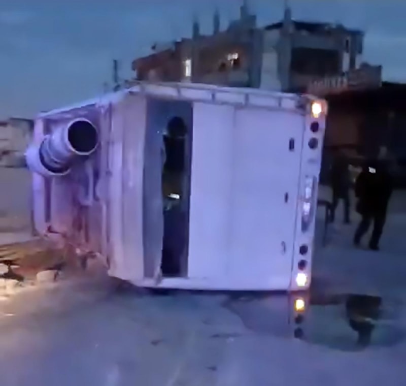 Levent Mahallesi'nde pazar tezgahına çarpmamak için manevra yapan sürücünün kullandığı 01 ACN 241 plakalı midibüs, kontrolden çıkarak devrildi.