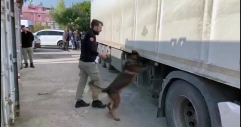 Tırda narkotik köpek ile yapılan aramada, dorse bölümünde straforlar içine gizlenen 87 kilo 214 gram esrar ele geçirildi.