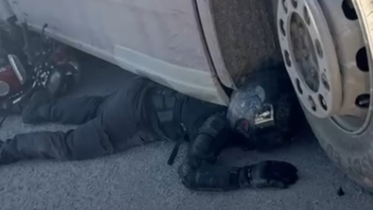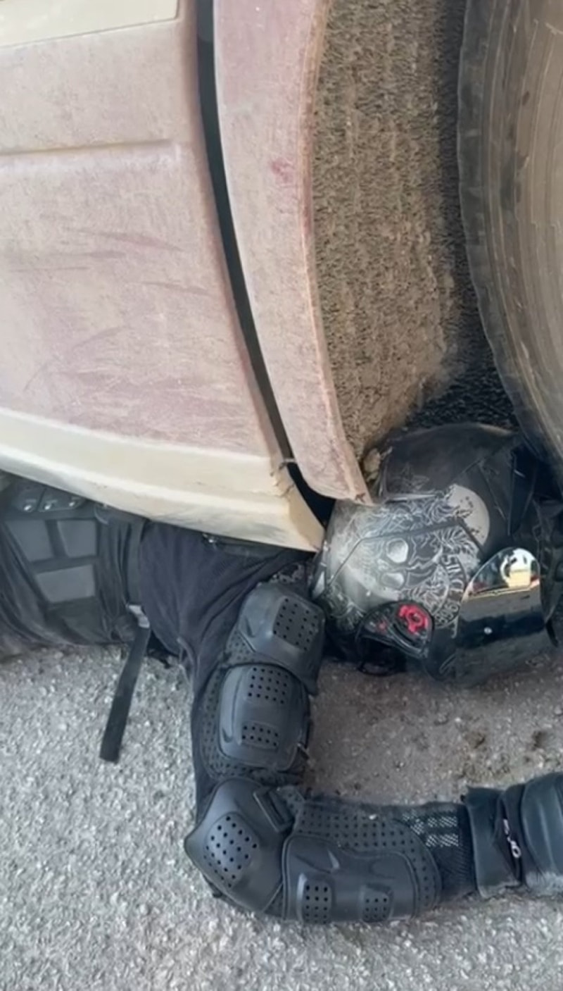 Motosikleti ile çarpıştığı tırın altında sıkışan kurye Mesut Aldanma, kaskı ve koruyucu kıyafetleri sayesinde kazayı hafif sıyrıklarla atlattı. Aldanma, "Ekipmanlarım sayesinde hayattayım. Kırığım, çıkığım bile yok; vücudumda ufak tefek eziklerle kurtuldum" dedi.
