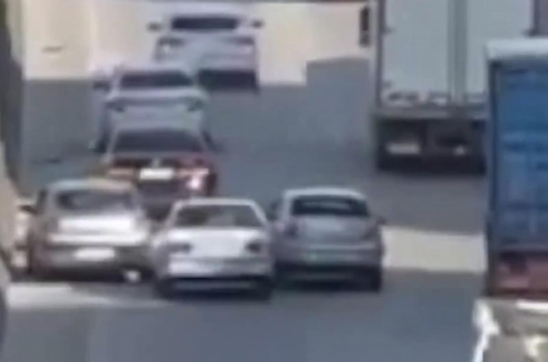 Otoyolda tırın tekerinden kopan lastik kaplaması, 5 otomobilin karıştığı zincirleme trafik kazasına neden oldu. Kaza, cep telefonuyla görüntülendi.