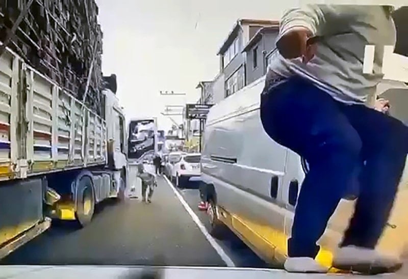Mehmet Necmi Z.’nin oğlu Mehmetcan Z., elinde bıçakla tırdan inip, otomobilin kaputuna çıktı ve tehditler savurdu.