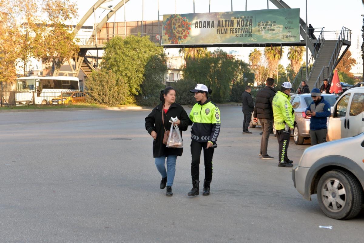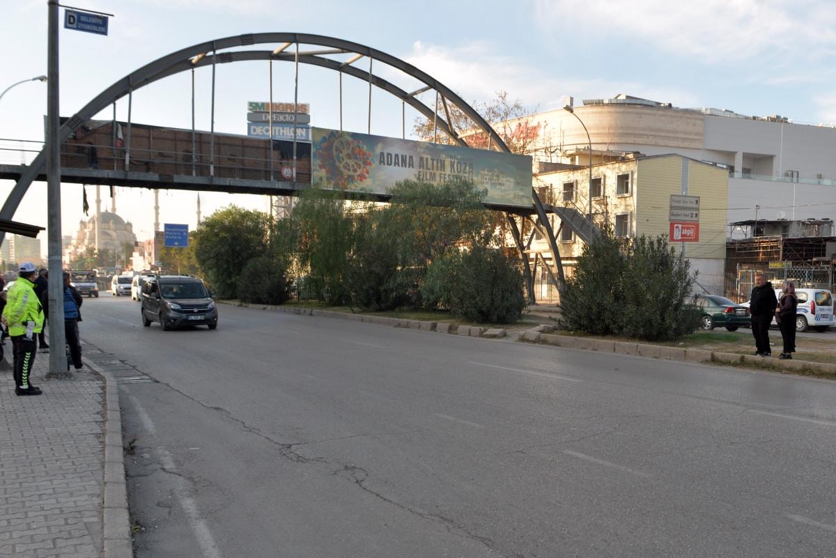 Ekipler, Yüreğir ilçesi Girne Bulvarı'ndaki yaya üst geçidinin yakınında denetim yaptı.