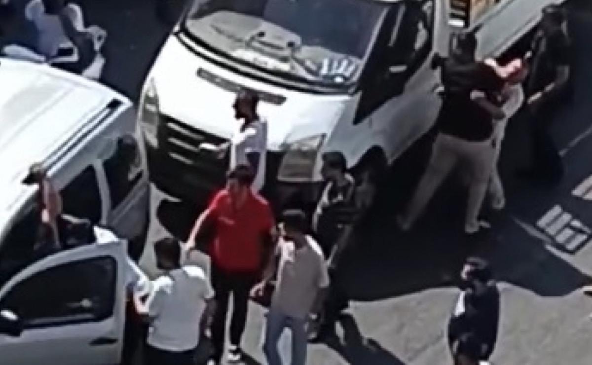 Tartışmanın büyümesi üzerine hafif ticari araçtaki kişiler inip, kamyonetin yanına geldi.