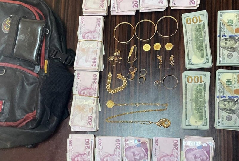 Gözaltına alınan Süleyman A.'nın sırt çantasını açan polis, 209 bin 200 lira, 18 bin 175 dolar, 3 yarım altın, 3 bilezik, 2 kolye, 6 çift küpe, 5 yüzük, bileklik ve künye buldu.