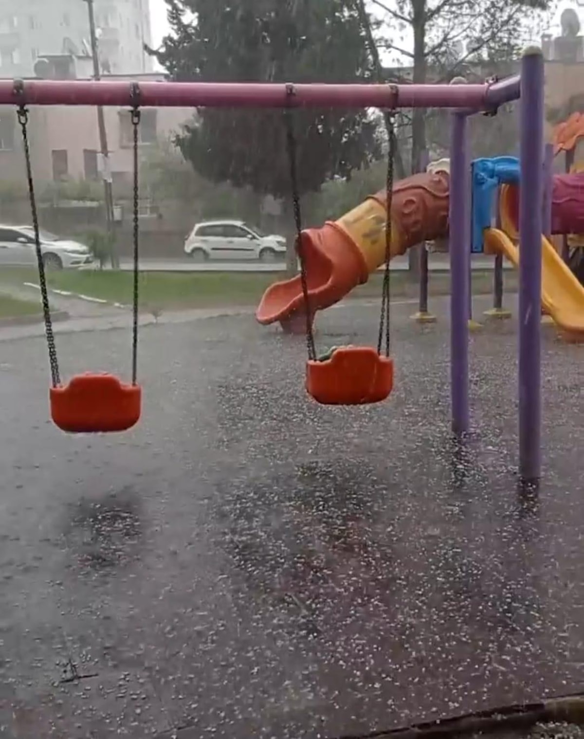 Gazeteci Adem Yavuz İlkokulu'nda ise çocuklar yağmur ve doluya teneffüste yakalandı.