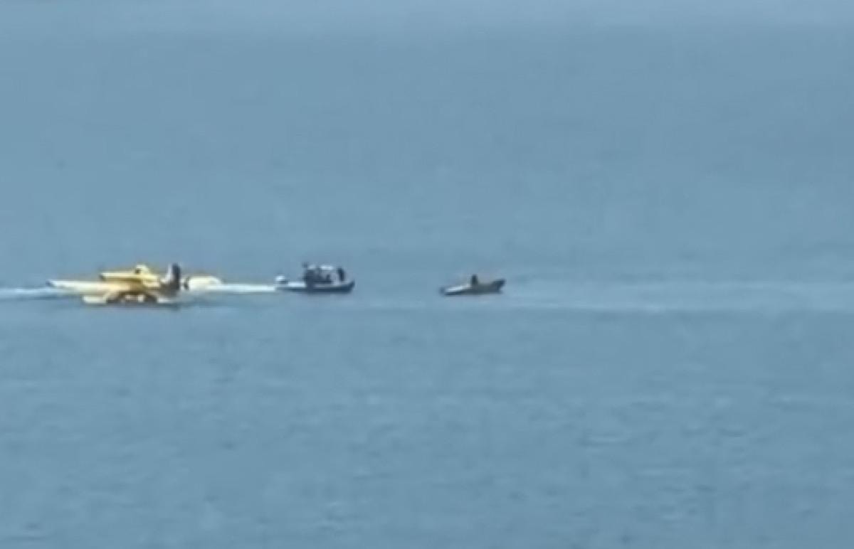 Başka bir yangın söndürme uçağı da yardım için göle iniş yapıp, batan uçağın yanında pozisyon aldı.