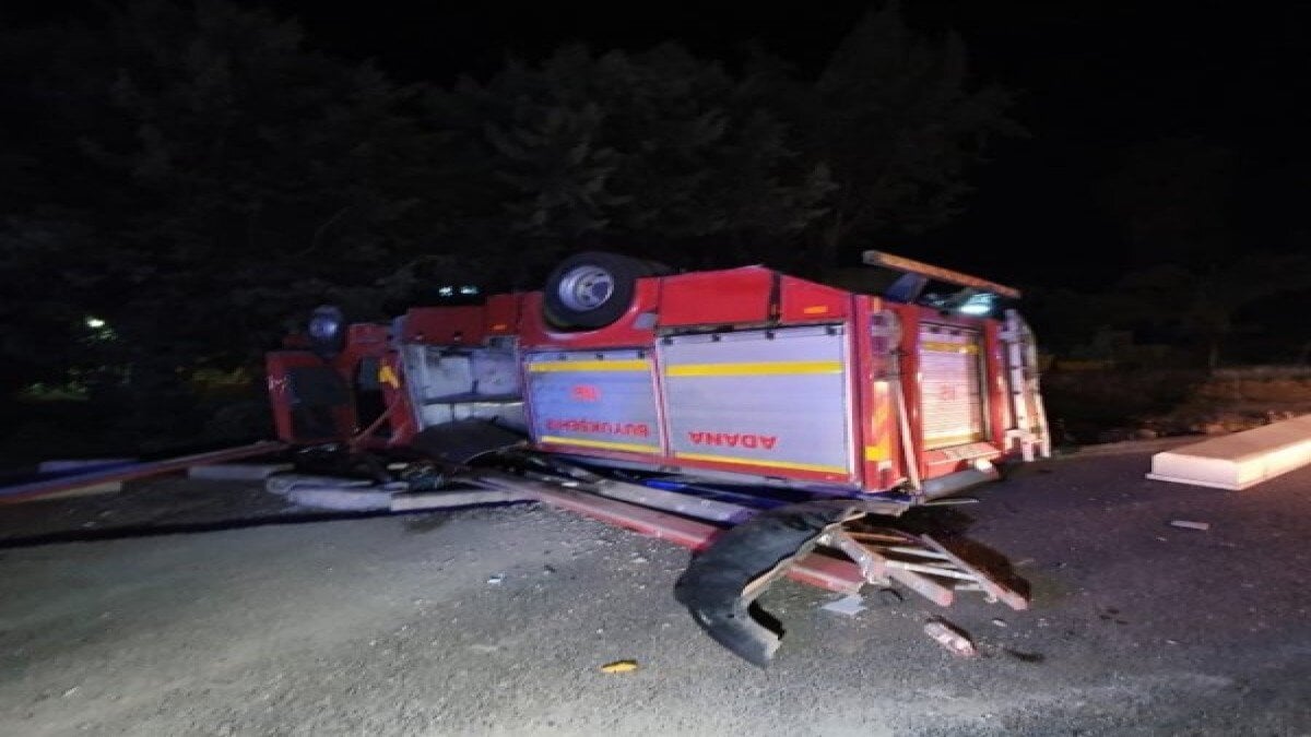 İtfaiye aracı, daha sonra Mahmut Yılmaz idaresindeki 01 CHY 98 plakalı hafif ticari araca çarparak, devrildi.