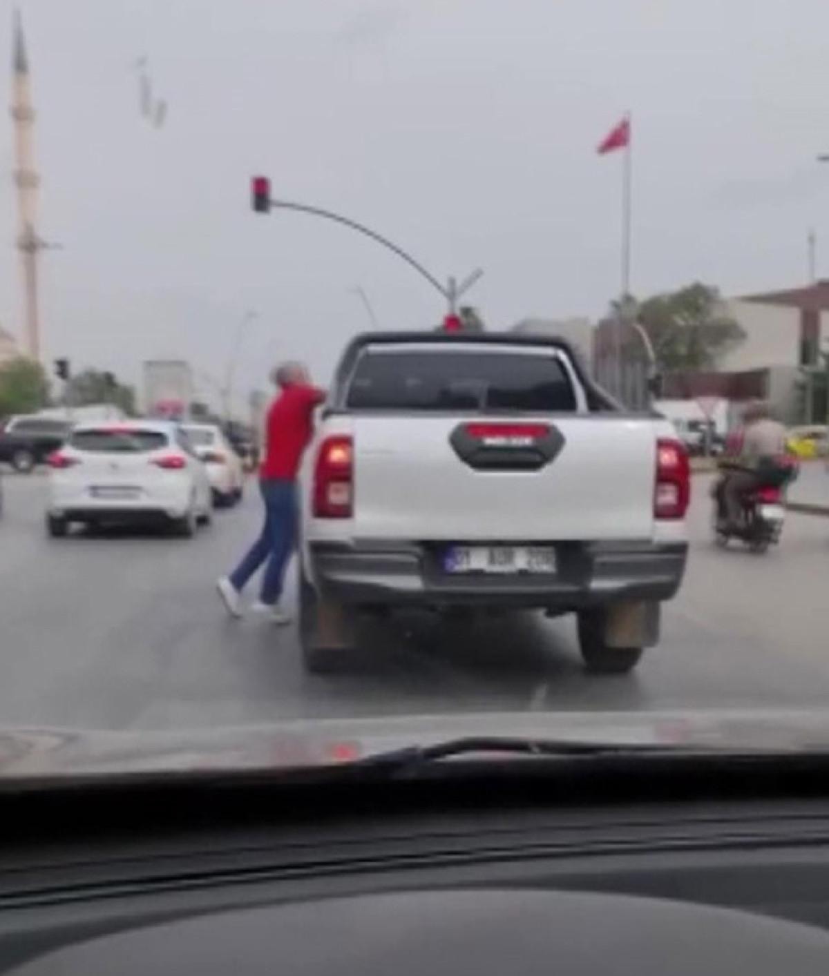 Adana'nın Seyhan ilçesine bağlı D-400 kara yolunda kaydedilen görüntülerde, iddiaya göre, iki otomobil sürücüsü yol verme meselesi yüzünden tartıştı.