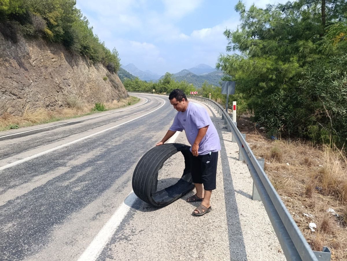 Yaşadık larını anlatan Ömer Gönül, “Yolda bulunan lastiğe ben de çarptım. Başka kaza olmasın diye geri dönüp lastiği kenara aldım. Araç sahiplerine sesleniyorum; lastik bakımlarını zamanında yaptıralım. Böyle bir durumda lastikleri yoldan çekelim. Aksi halde can ve mal kayıpları olabilir” dedi.