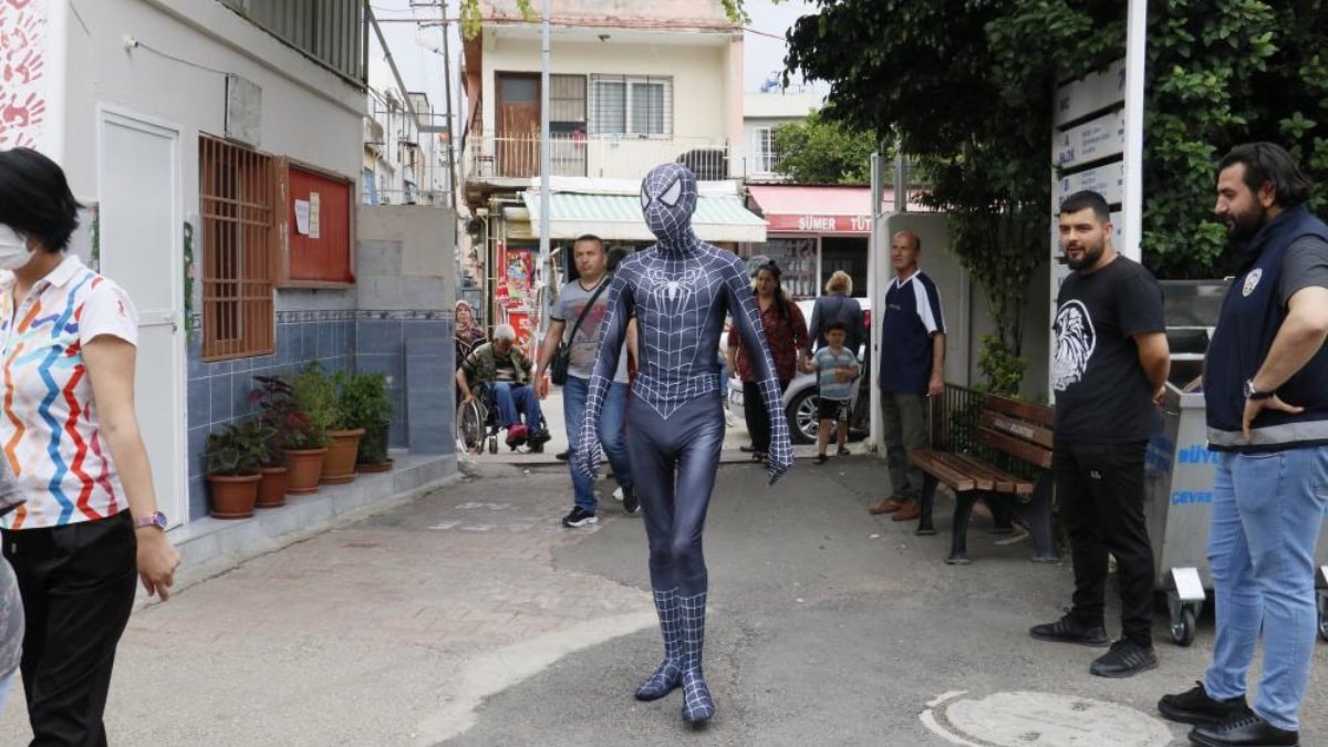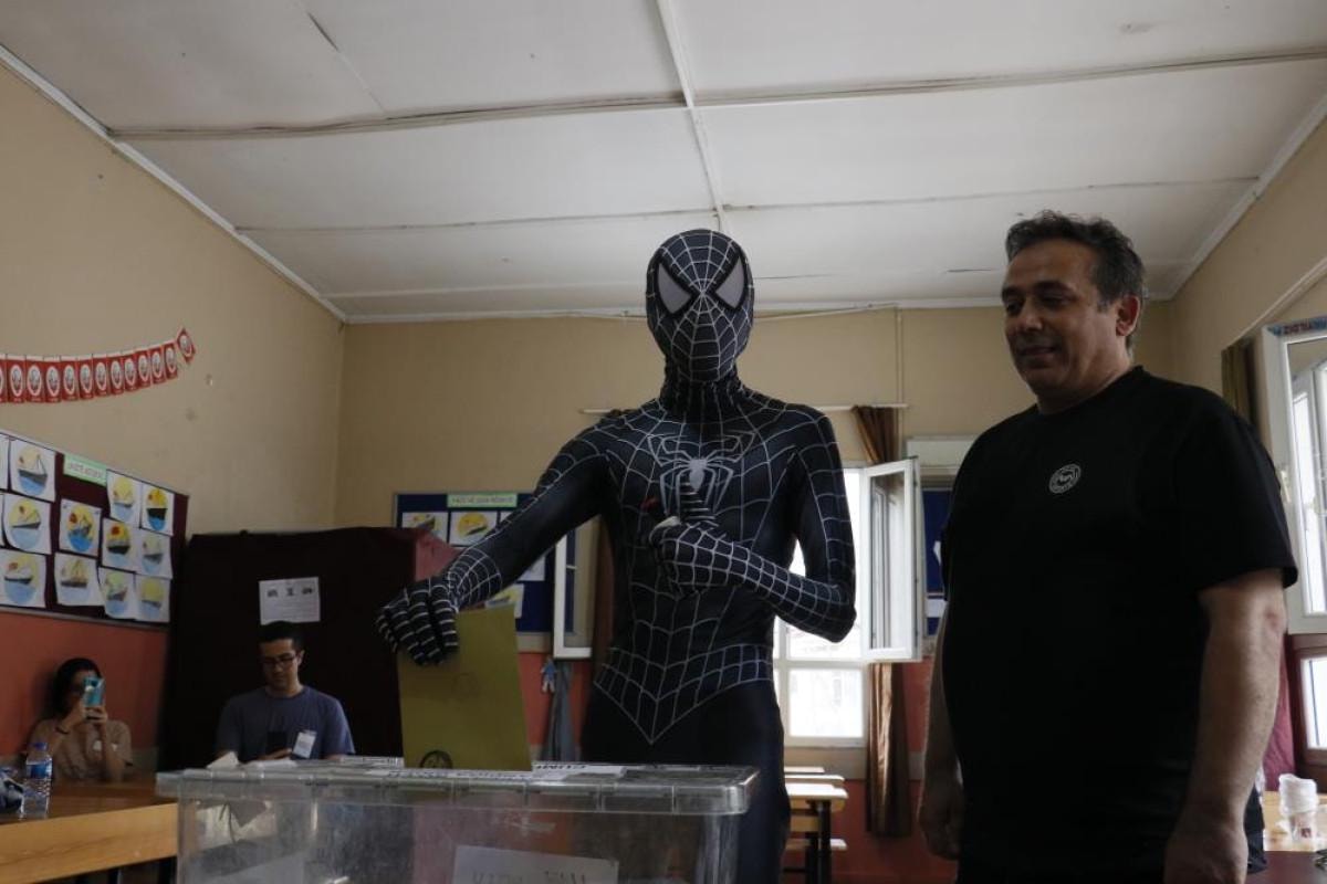 26 yaşındaki Can Şaşkın, çocukluk tutkusu olan örümcek adam kostümü giyerek oy kullanmaya geldi.