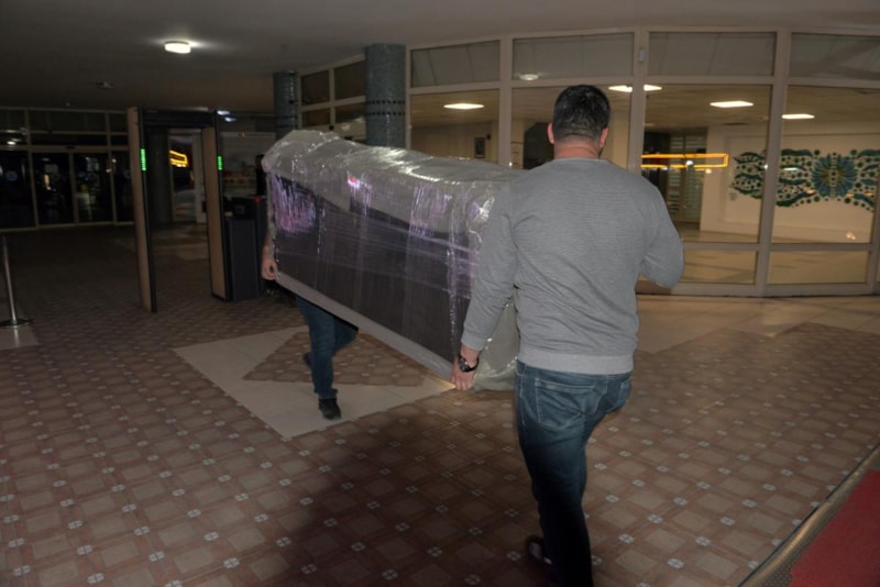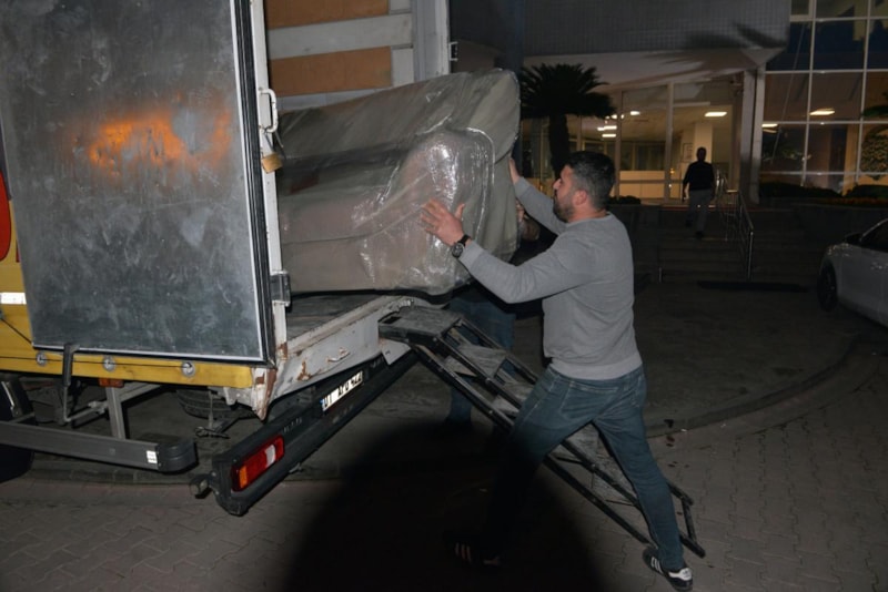 Belediyeye gelen icra memurları, Başkan Tekin’in makam odasındaki koltuk, masa ve sandalye gibi eşyaları haczederek kamyonete yükledi.