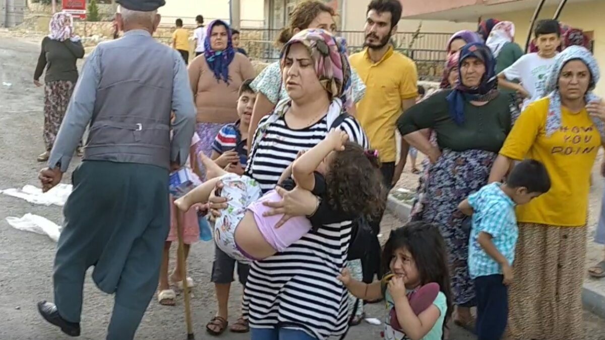 Semra Aslan, kucağına aldığı küçük kızını ambulansa taşıdı. Bu sırada ailenin 5 yaşındaki kızı Defne, annesinin elbisesinden tutup yanında yürürken gözyaşlarına boğuldu.