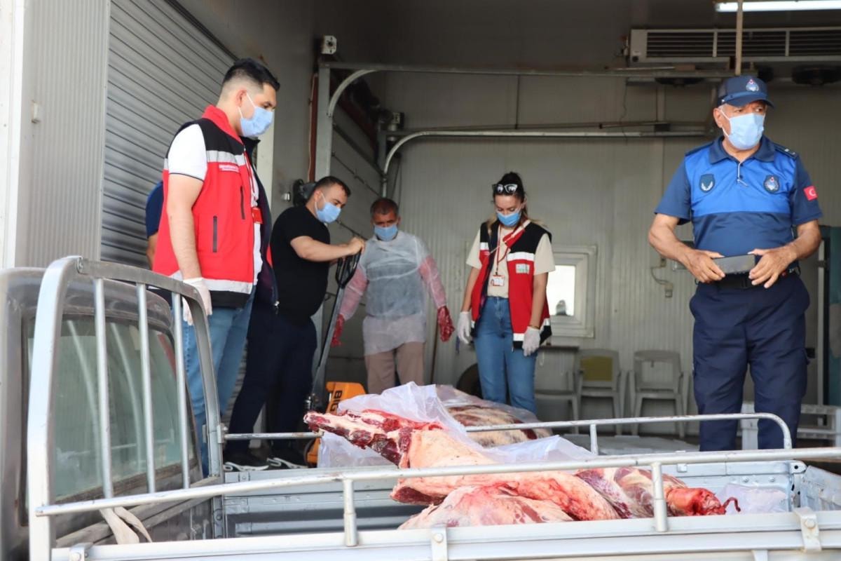 Etler bir soğuk hava deposuna götürülerek muhafaza altına alınırken etlerden numuneler alındı.