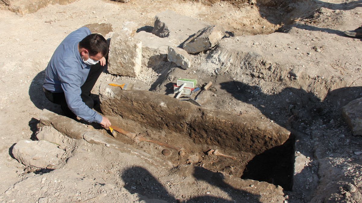 Yaklaşık 40 gündür süren kazılarda mimari parçalar, kanal yapıları ve büyük blok taşlar ortaya çıktı. Bu blok taşlarının arasında ise bugün ilginç olan bir mezar yapısı tespit edildi.