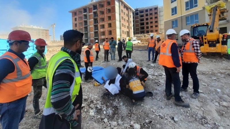 Adıyaman'da merkez İndere bölgesinde devam eden konut alanında çalışan Ahmet Coşkun, sürücüsü ve plakası öğrenilemeyen iş makinesinin çarpması sonucu ağır yaralandı.