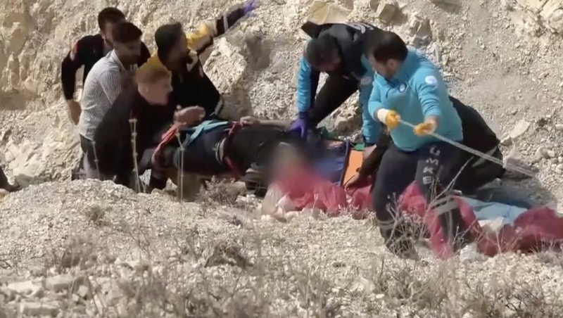 Olay yerine gelen ekipler, uçurumda ağır yaralı olarak bulunan Kartalmış’ı bulunduğu yerden çıkartmak için yoğun çaba sarf etti.