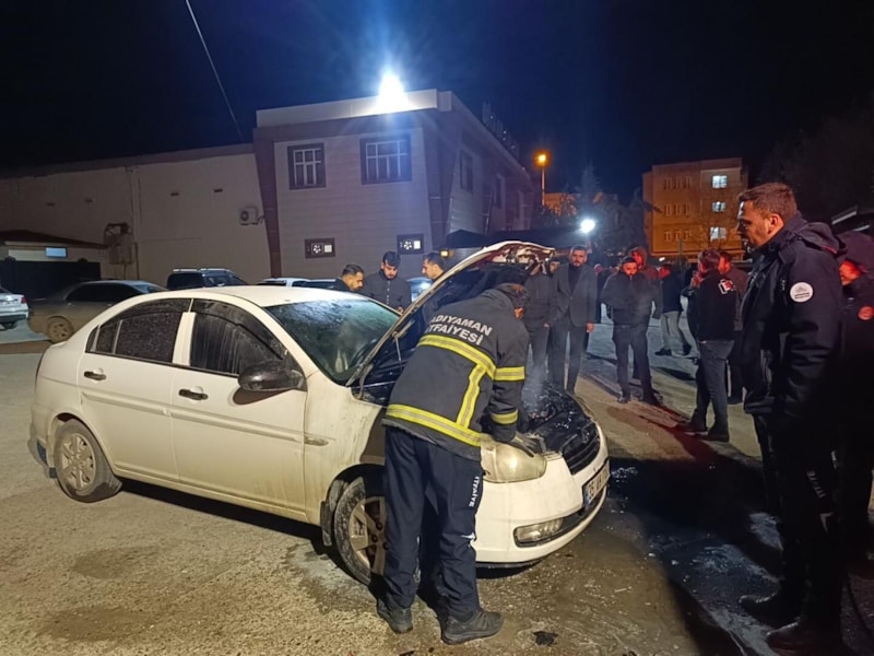 Adıyaman merkeze bağlı Cumhuriyet Mahallesi 30 Ağustos Caddesi yakınlarında park halinde bulunan otomobilde yangın çıktı.