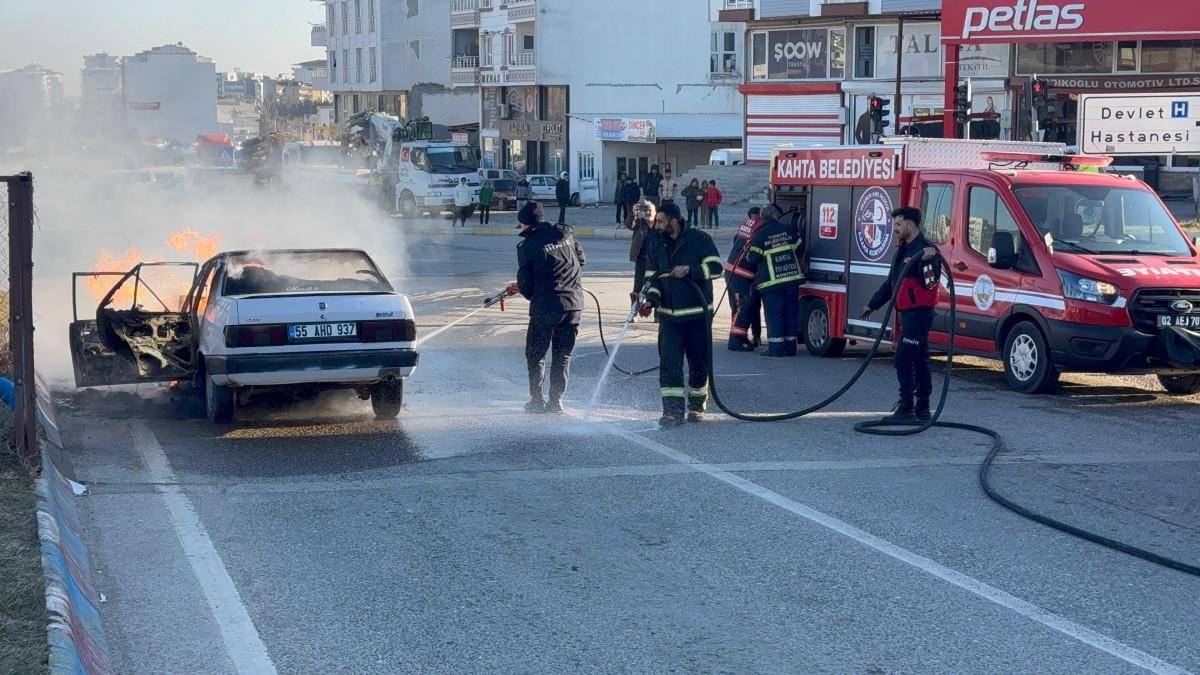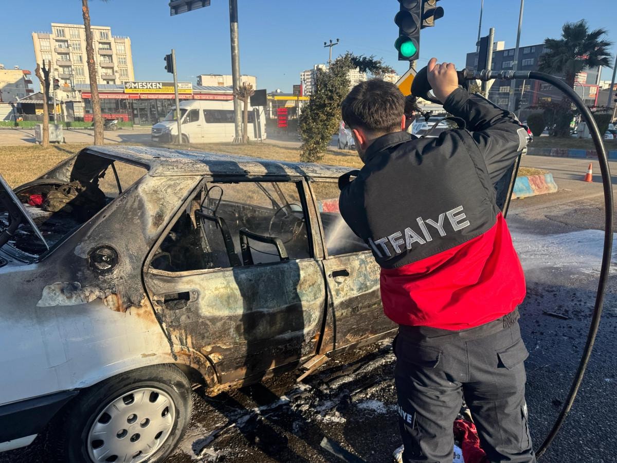 Olayda, H.A. yönetimindeki Tofaş marka otomobil, seyir halindeyken henüz belirlenemeyen bir nedenle alev aldı.