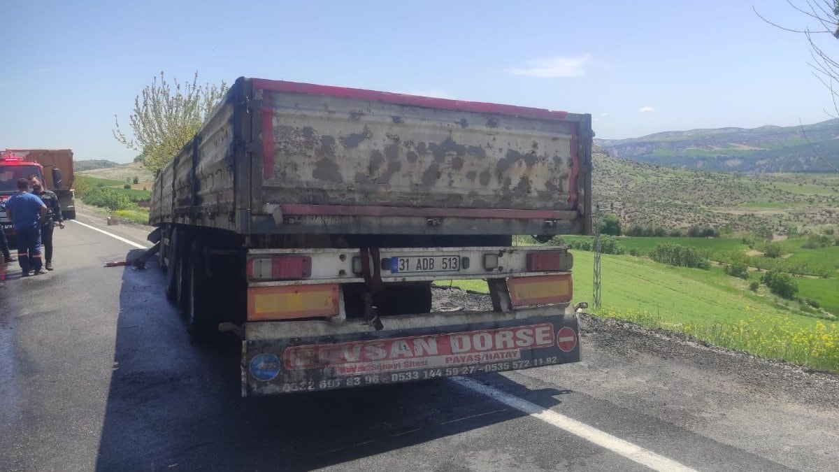 Adıyaman-Gölbaşı karayolu Besni yol ayrımı yakınlarında Mahsun Solmaz'a ait tırın dorsesinde yangın çıktı.