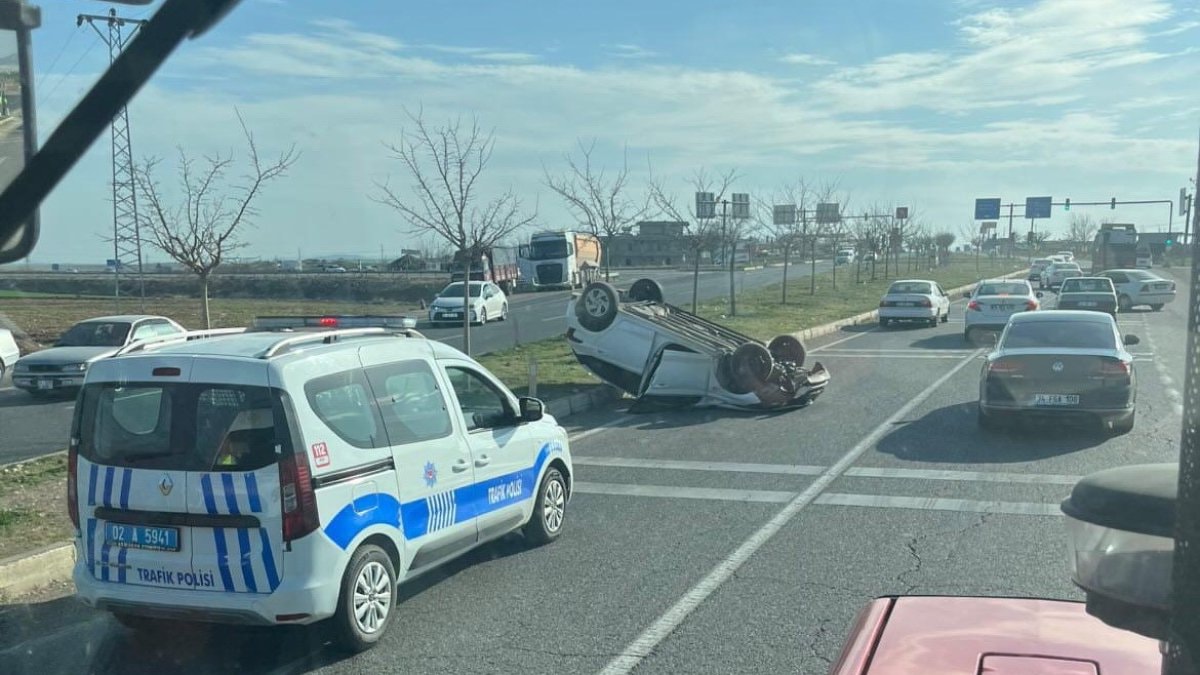 Adıyaman'dan yola çıkarak Gölbaşı kara yolu üzerinde seyreden otomobil sürücüsü, Şanlıurfa yol ayrımı kavşağı yakınlarında direksiyon hakimiyetini kaybetti.