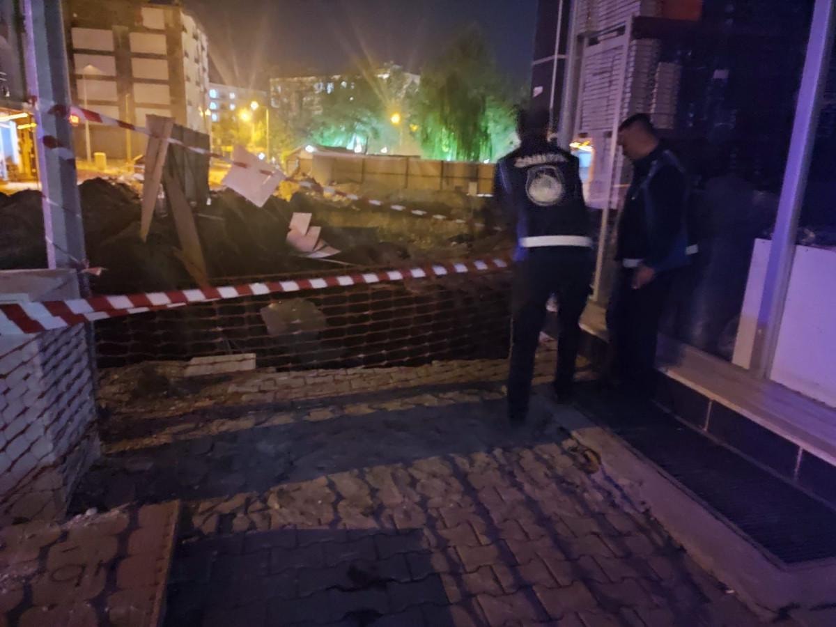 Ekipler, şehir merkezinde kalıcı konutlarının yapıldığı rezerv alanındaki toprak kaymasından dolayı çöken alanda gerekli güvenlik önlemlerini alarak, emniyet şeritleri çekti.