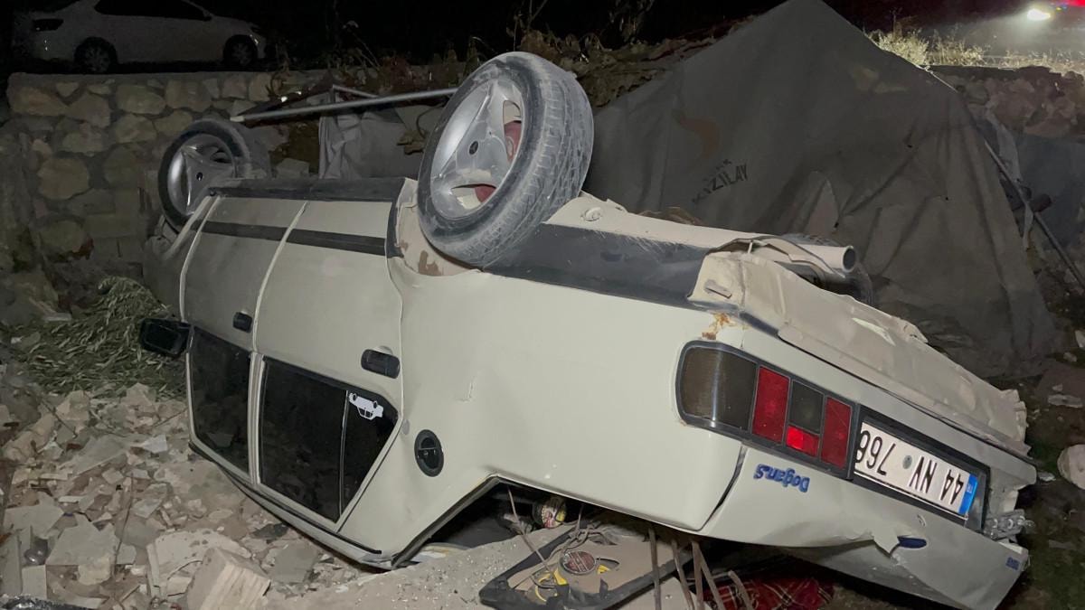 Ters dönen otomobilde bulunan isimleri belirlenemeyen 2 kişi hafif şekilde yaralandı.