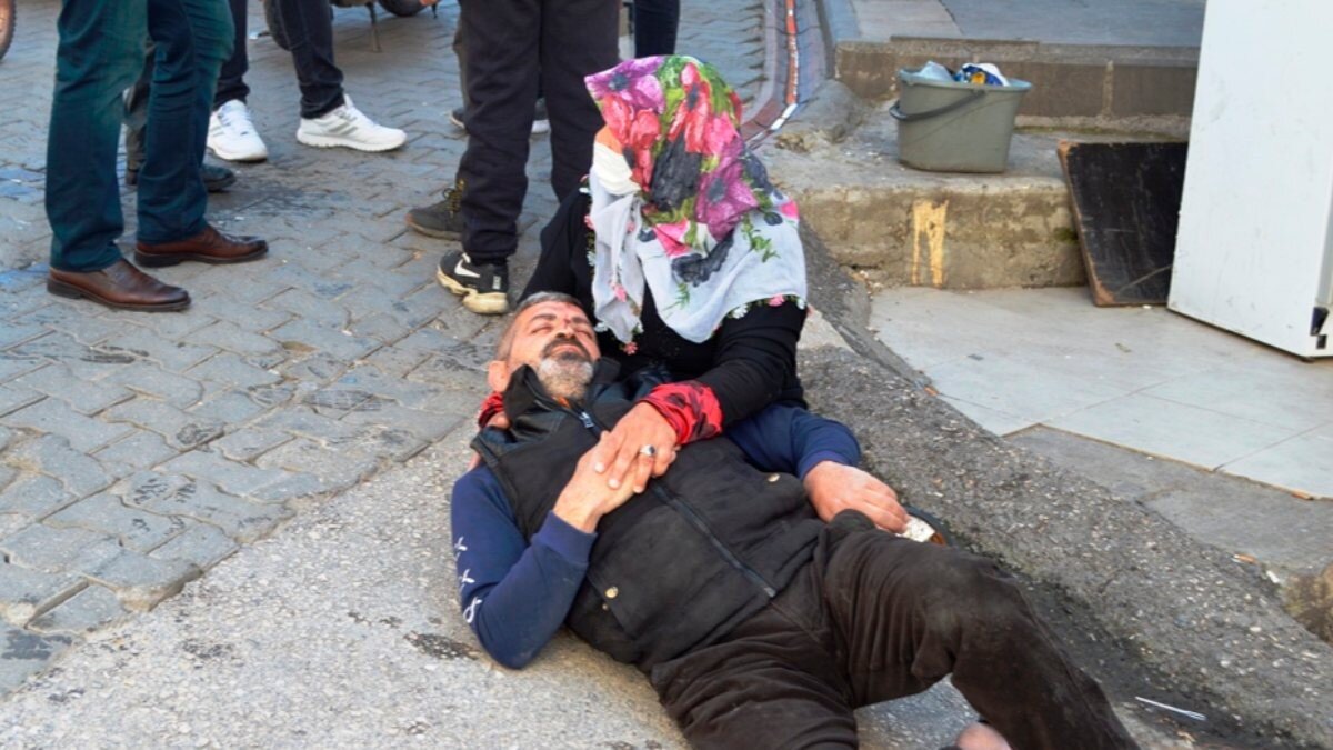 Kavganın ardından ismi öğrenilemeyen kadın, yaralanan yakınını dizlerinin üzerine yatırıp elini tutarak ambulansın gelmesini bekledi.