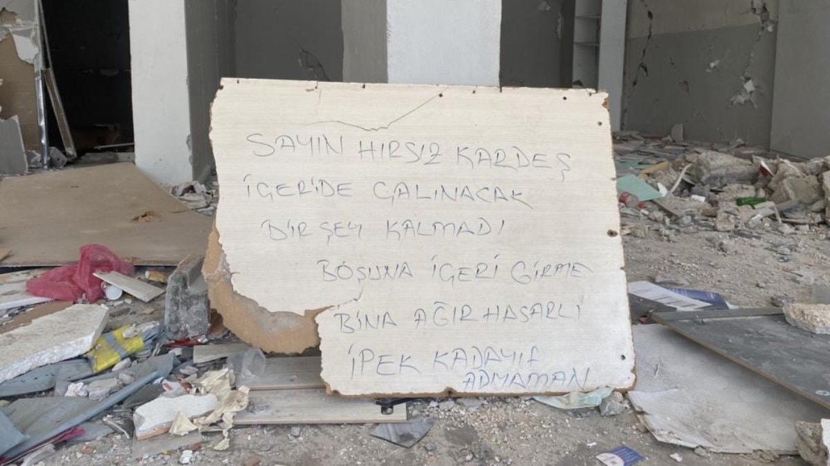 Sayın hırsız kardeş, içeride çalınacak bir şey kalmadı. Boşuna içeri girme, bina ağır hasarlı.