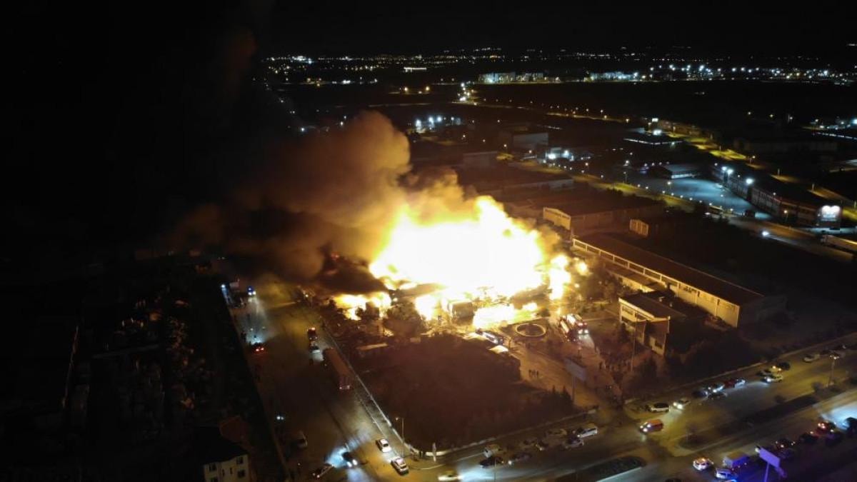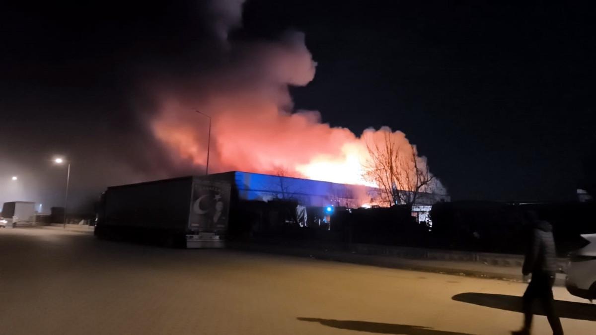Alevler, yan taraftaki bir fabrikaya sıçrarken, ekipler yangının tamamen söndürülmesi için yoğun bir şekilde çalıştı.