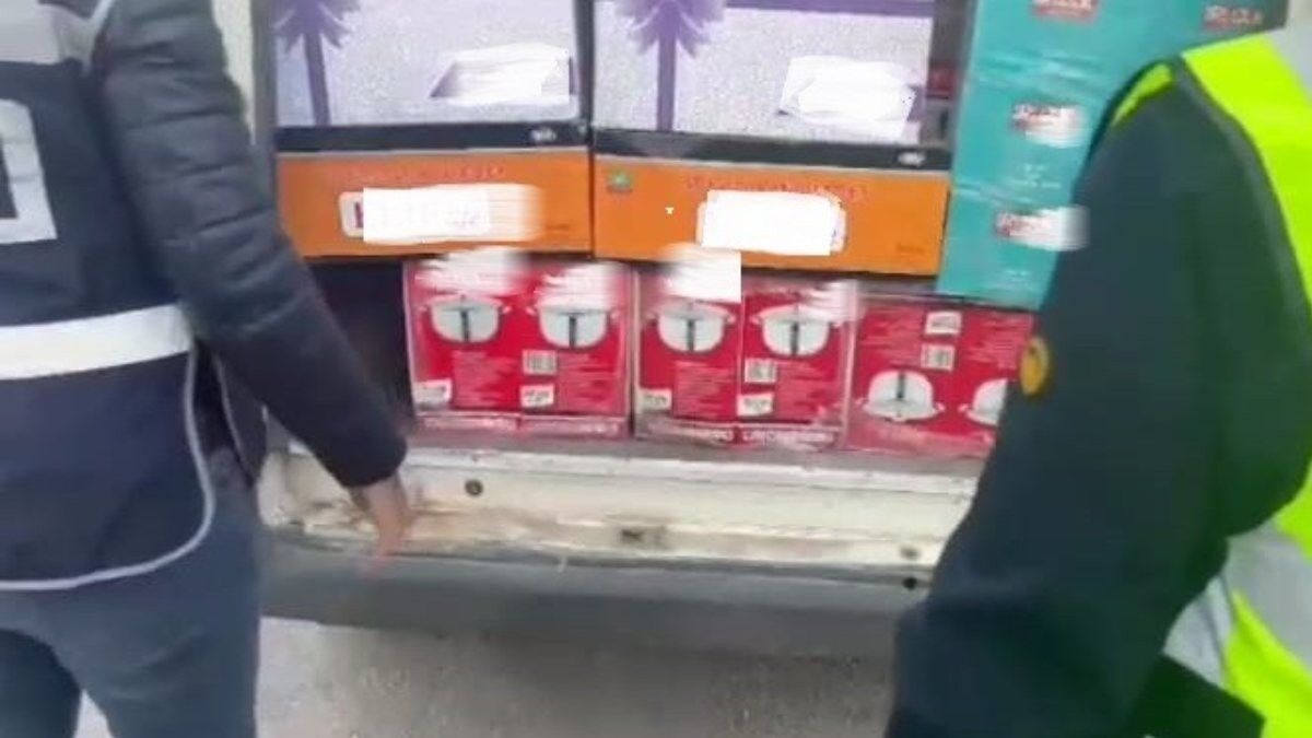 Yapılan aramalarda tencere, tava ve tabak kolilerinin içerisinde 645 bin adet doldurulmuş makaron ele geçirildi.