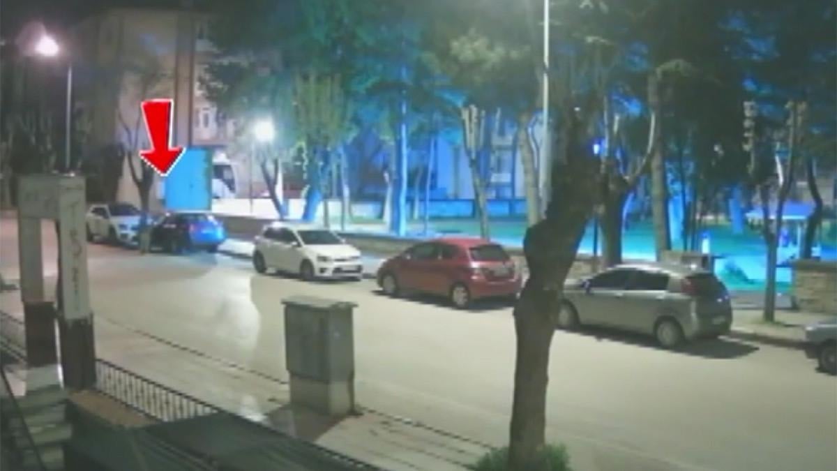 Şüphelinin park halindeki araçların kapılarını kontrol etmesi, bazılarının kapısını açıp içeri girmesi ve bir süre sonra da ayrılması yer aldı.
