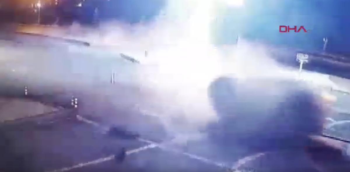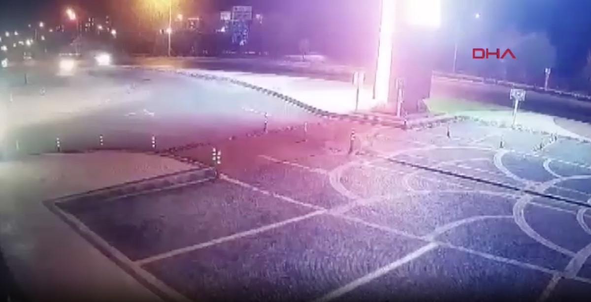 Kaza anı güvenlik kamerasına yansıdı. Görüntüde, kontrolden çıkan otomobilin savrulup reklam panosuna, ardından takla atıp, park halindeki otomobile çarparak durduğu anlar yer aldı.